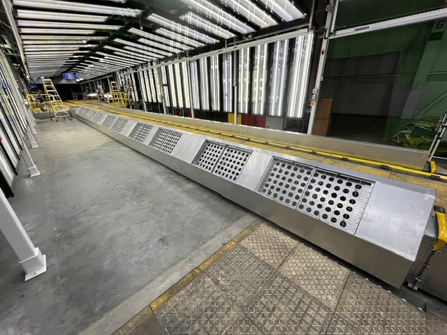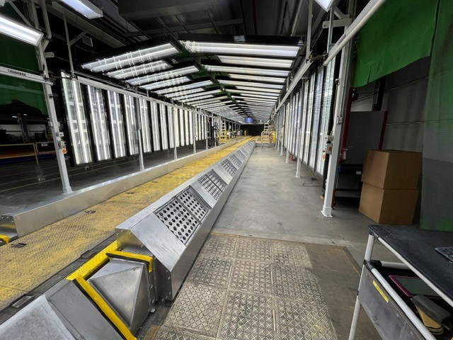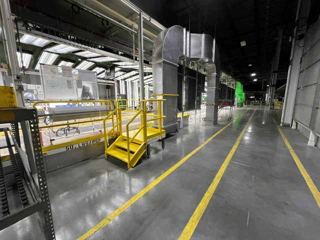 Ground level of ED Sand deck was extended, requiring modifications to the exhaust ductwork. Due to space constraints of the booth workers and required flow rate of exhaust, a unique duct design was engineering and fabricated to allow for the most ergonomic working space while maintaining adequate exhaust.